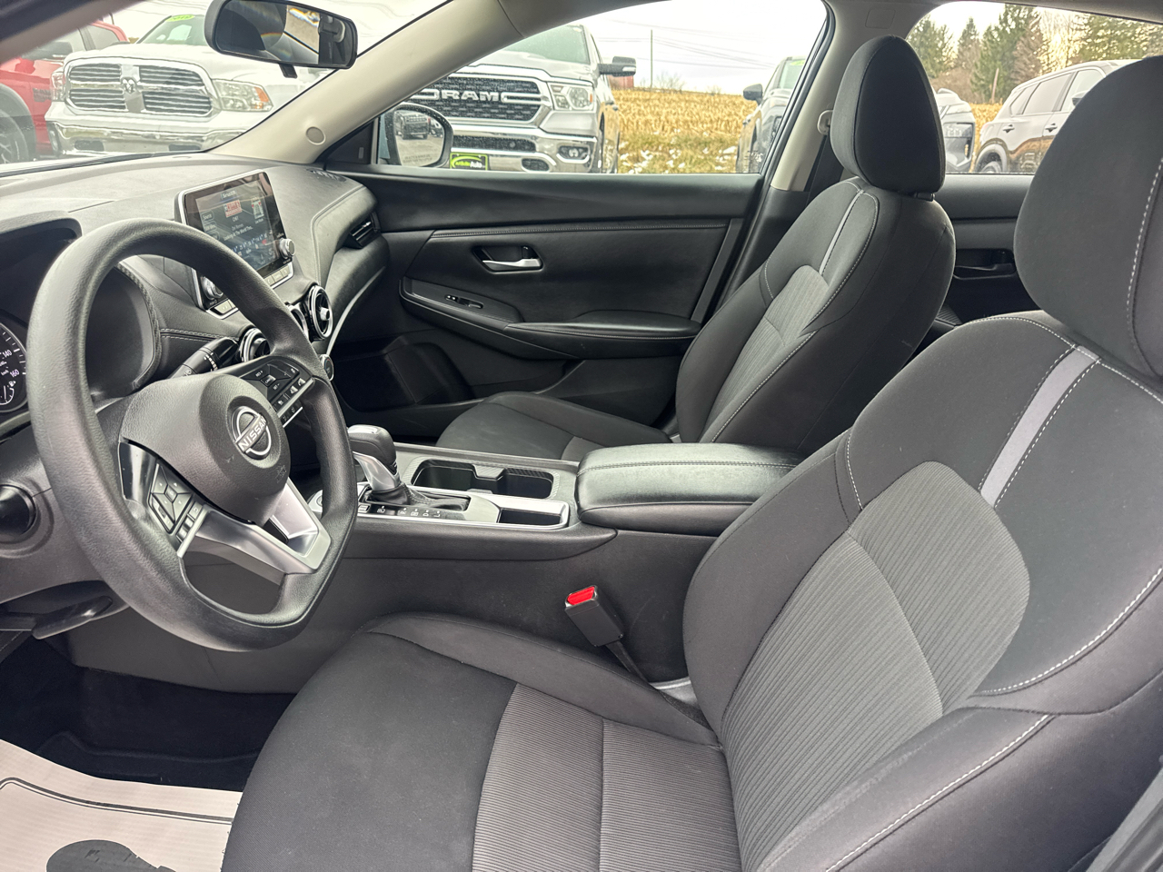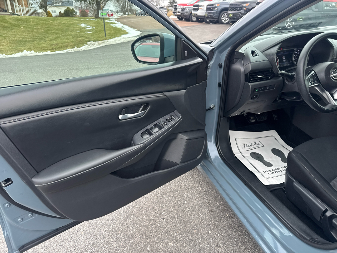 The exterior of this Sentra is stylish and modern, featuring body-colored accents, striking halogen auto high-beam headlamps, and eye-catching black grille with chrome accents. Slip inside the comfortable cabin and sink into the supportive front bucket seats or the 60-40 folding rear bench seat. Whether you're running errands around town or embarking on a road trip adventure, this Nissan will keep you comfortable and entertained with its intuitive interior layout and 6-speaker sound system.