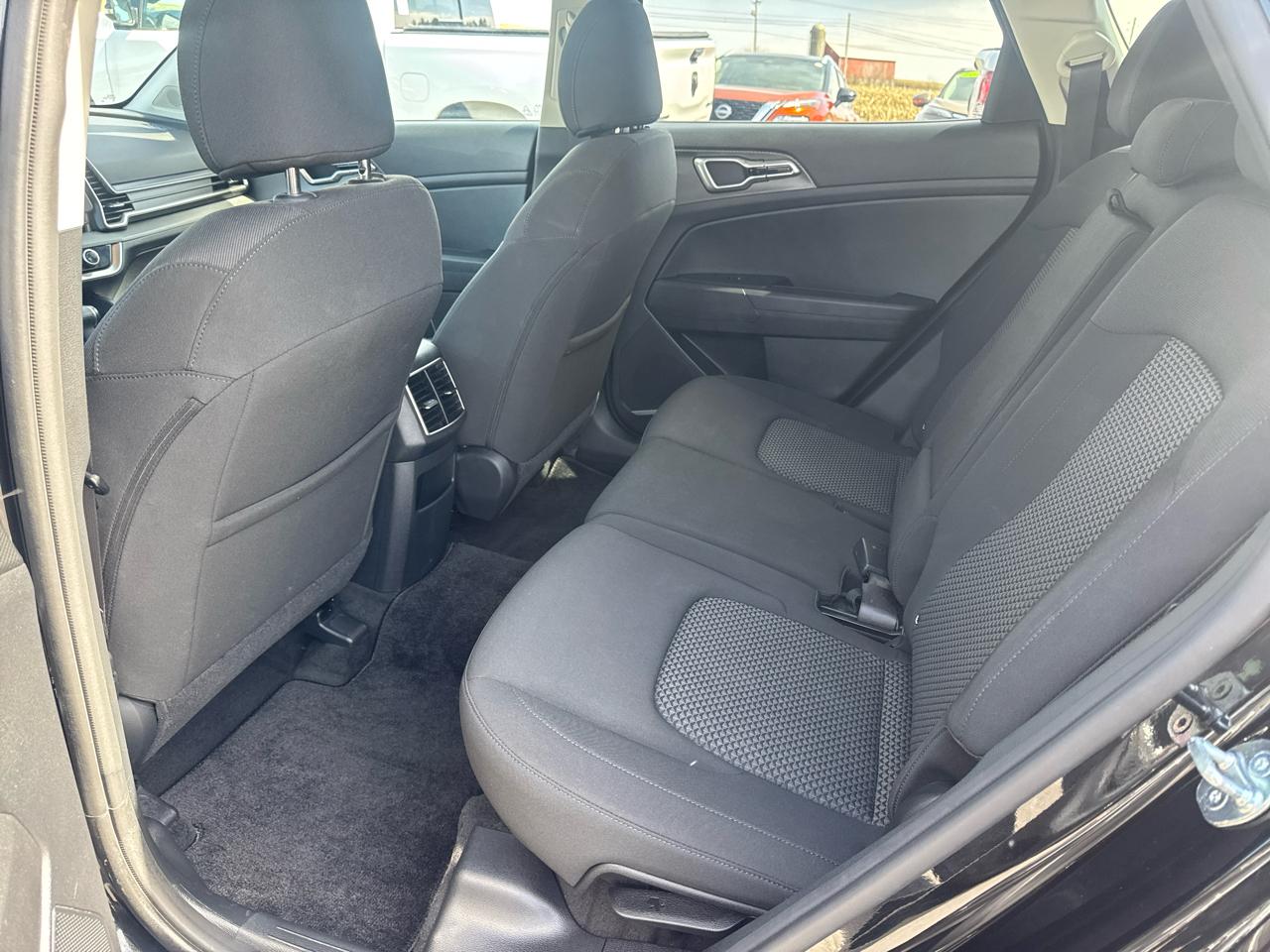 Outside, the Sportage turns heads with its sleek design, featuring 17" alloy wheels, LED daytime running lights, and black grille accents. The Fusion Black exterior is complemented by body-colored bumpers and metal-look trim for a modern and sophisticated look.