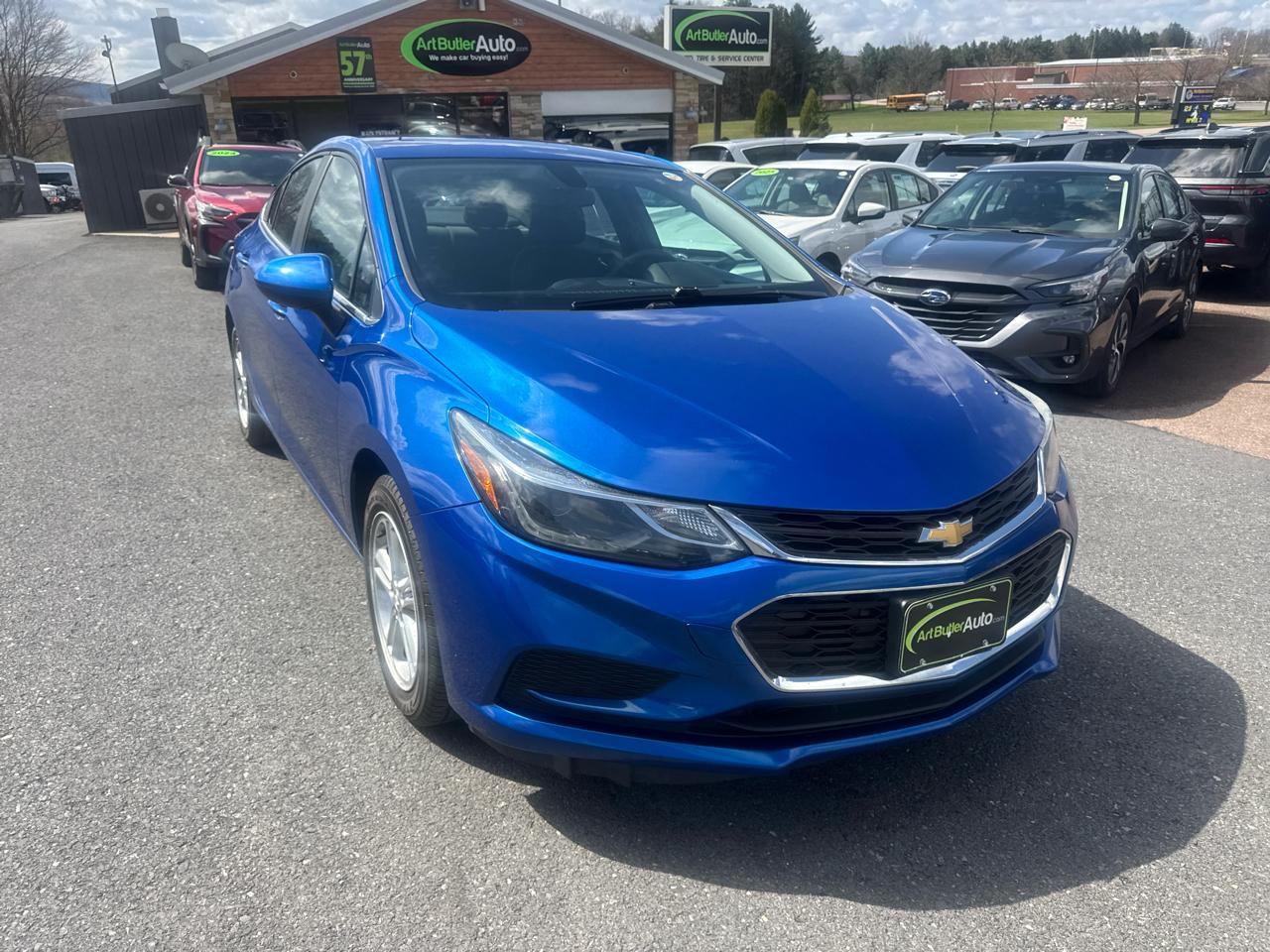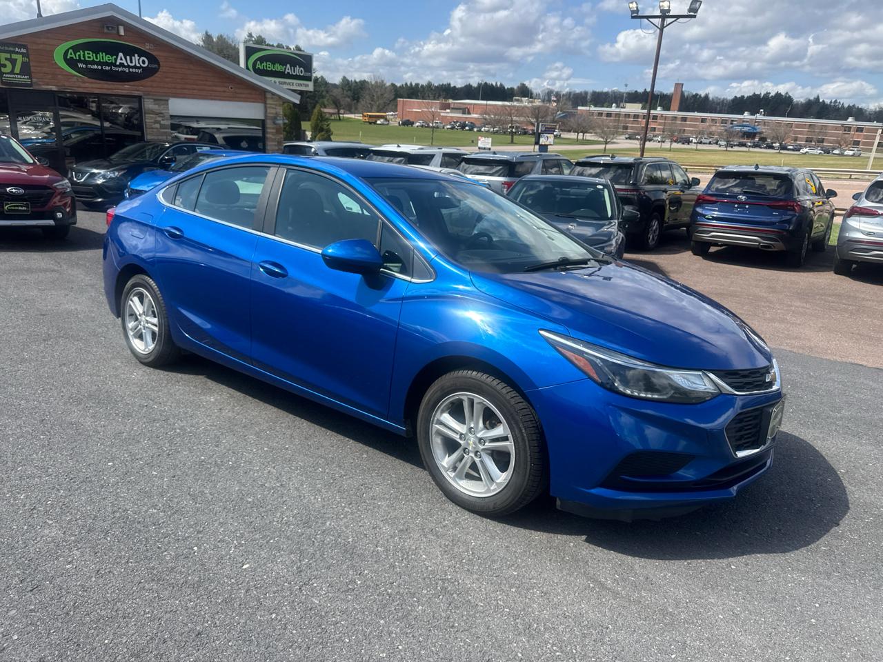 Zoom around town in style with this sleek and sporty blue 2017 Chevrolet Cruze! Powered by a peppy 1.4L turbocharged engine, this car is ready to hit the road with 153 horsepower under the hood. The stop-start system helps enhance fuel efficiency, while the front wheel drive ensures a smooth and responsive driving experience.